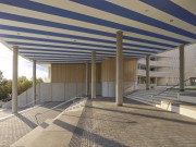 Thanks to the reinforced concrete skeleton construction and load-bearing corridor walls in a circle, the drywall partition walls can be adjusted as needed and adapted to changing educational requirements.