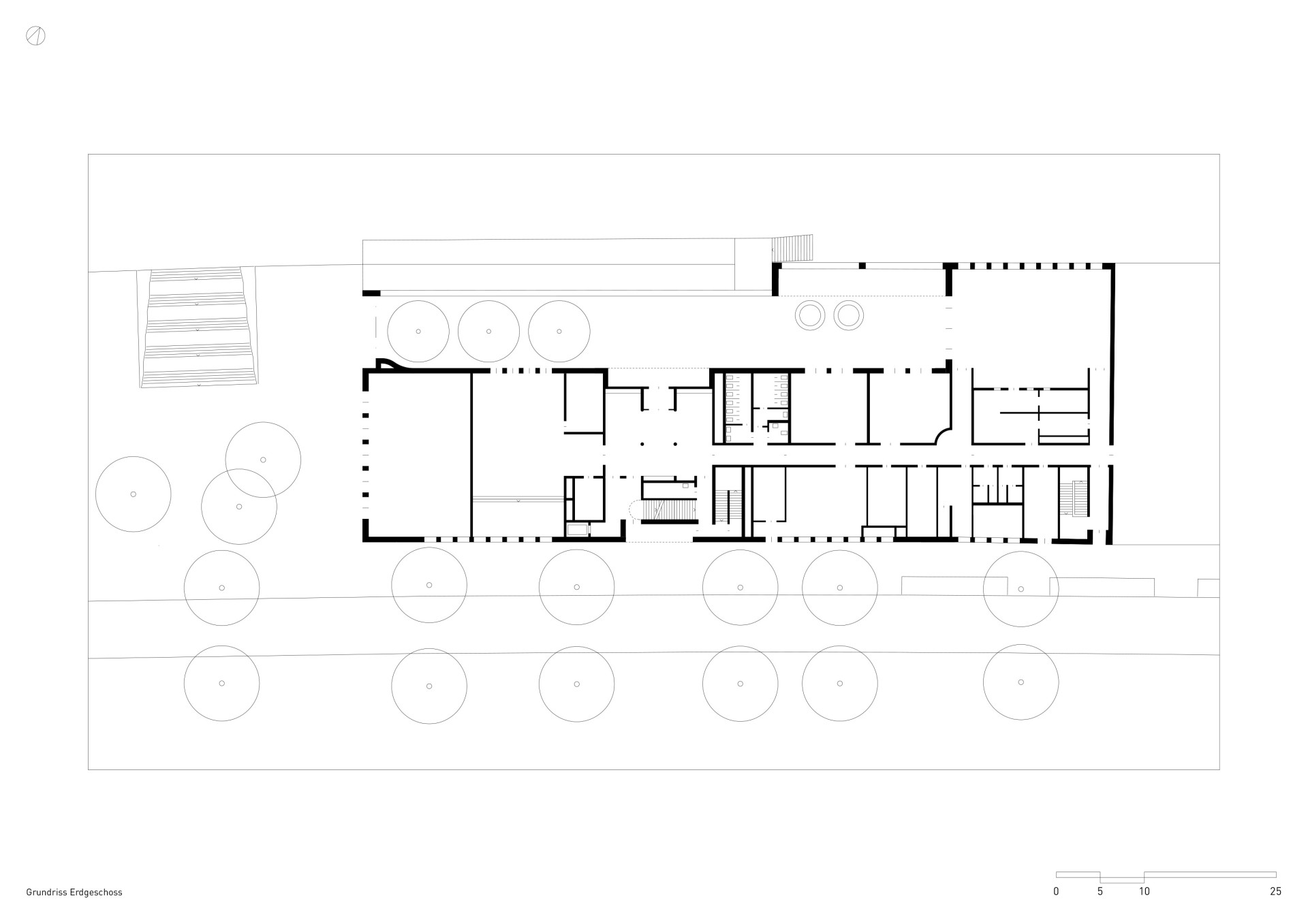 Das ungewöhnliche Konzept einer vertikalen Schule ist den beengten Grundstücksverhältnissen geschuldet. Es mündet in der Schichtung der Funktionen übereinander, einschließlich Pausenflächen mit Pflanztrögen auf den Dächern. Die einfache Grundrissstruktur ist leicht zu begreifen. Vom zentral gelegenen Foyer aus werden die Cluster und Pausenflächen in den OGs über leicht auffindbare Treppen und einen Aufzug erschlossen. Zur einen Seite liegen konzentriert die Räume für Lehrer und Verwaltungsmitarbeiter, zur anderen schließen die Cluster für die einzelnen Jahrgangsstufen samt zugeordneter Lehrerstützpunkte an.